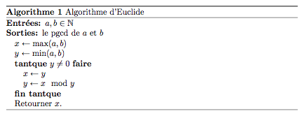 \caption{Algorithme d'Euclide}