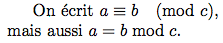 On écrit $a\equiv b\pmod{c}$, \\