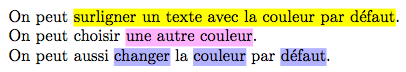 On peut \hl{surligner un texte avec la couleur par défaut}.